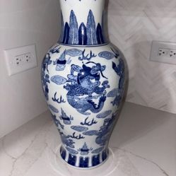 Chinese blue and white porcelain vase in cobalt blue pigment with dragon motif no damage 18” tall$35Fort Myers, FL