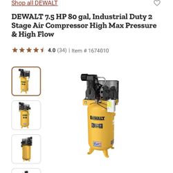 DeWalt 7.5 HP 80 Gal$1,200Fort Myers, FL