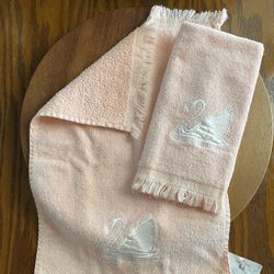 **VINTAGE** 2 Hand Towels - Embroidered with Swan - Peach Colored - Swan on Both$13Ruskin, FL