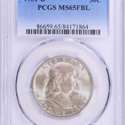 1951 D Franklin Half Dollar PCGS MS 65 FBL (Toned) + 2 FREE WHEAT PENNIES$170Lutz, FL