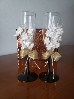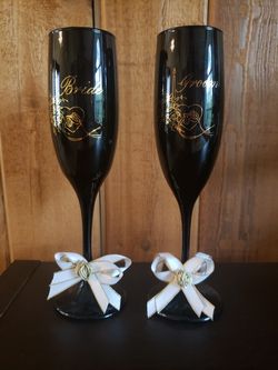 Porcelain bride and groom cake top. Bridal toasting champagne flutes. Still available$28Altamonte Springs, FL