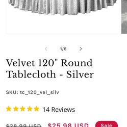 Silver Velvet 120” Round Tablecloths/ Silver Velvet 90x132 Rectangular Tablecloths$250Oakland, FL