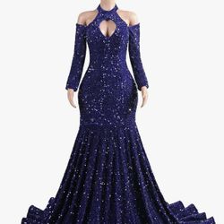 Mermaid Trumpet Evening Gown Long Sleeve V Neck Sequins Elegant Dress Engagement Court Train$100Orlando, FL