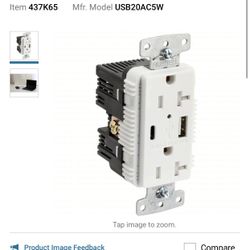 USB Charger Receptacle: Duplex, 5-20R, 20 A, 125V AC, White, 2 USB Ports, A/C USB Connection Type$50Clermont, FL