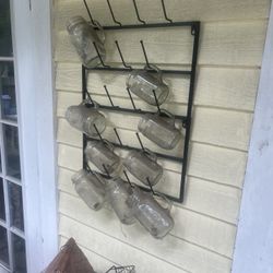 Rustic Farmhouse Wall Mug Rack with Vintage Mason Jar Mugs – 8-Piece Set$110Dade City, FL