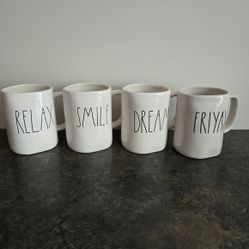 Rae Dunn White Ceramic Mugs/cups, DREAM SMILE FRIYAY RELAX $63Orlando, FL
