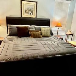 Lovely king size cherry set includes everything BUT the mattress!! Perfect condition modern slay bed with two night stands dresser $450Davenport, FL