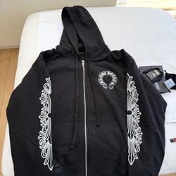 Chrome Hearts Horseshoe Floral Cross-Sleeve Zip Up Hoodie 'Black/White'$300Heathrow, FL