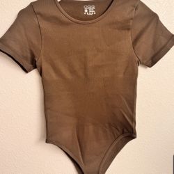 OQQ Brown Short Sleeve One Piece Bodysuit Solid Opaque Women's Size S$10Davenport, FL
