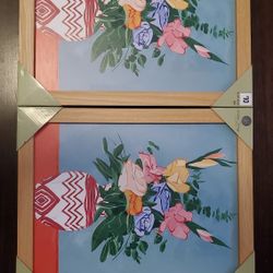 2 New Floral Artwork With Wooden Frame 2 New Floral Artwork With Wooden Frame. Single sawtooth to hang on back. see photos for measurements. $5 each, $5Leesburg, FL