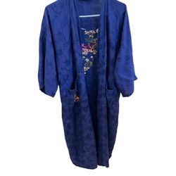 Vintage Fedo China 1960s 70s Womens Robe Embroidered Navy Colorful$10Heathrow, FL