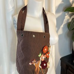 Charming brown bag with floral embroidery, perfect for adding a touch of nature to your style. Disney Bambi’s Bag ** missing a little tie to shut bag$26Heathrow, FL