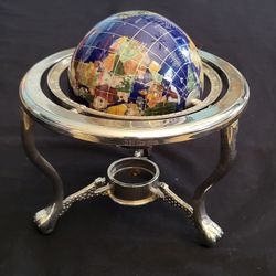 Vtg Semi-precious Gemstone Globe Lapis, Mother Of Pearl 8" Tall Panther Design$75Oakland, FL