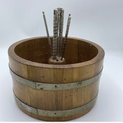 1960 Baskerville Putney Vermont Wooden Nut Barrel With But Cracker And Pickers$20Belle Isle, FL