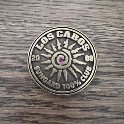 LOS CABOS", "2008", and "SUNGARD 100% CLUB coin/token$25Kissimmee, FL