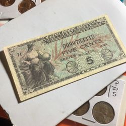 Military Payment Certificate (Five Cent) For Sale$0Orlando, FL