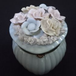 Vtg Procelain Blue Trinket Box Hinged 3D Flowers Marked On Bottom$20Oakland, FL
