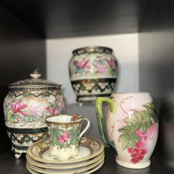 Vintage Set Of Five Handpainted Japanese Salad Plates And Matching Pot With Kid$25Belle Isle, FL