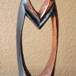 Vtg Wooden Abstract Sculpture Mother&Baby With A Heart Handcarved In Ghana 14.5"$40Oakland, FL