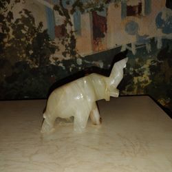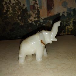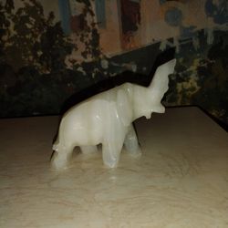 Elephant Large White Onyx? Quartz? Hand Carved Stone Lucky Trunk Up Elephant Fig$22Aloma, FL