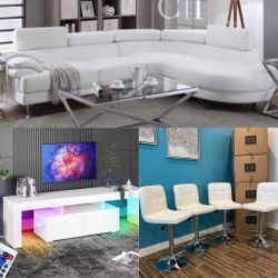 New White Sectional, Tv Stand And 4 White Bar Stools $1,630Windermere, FL