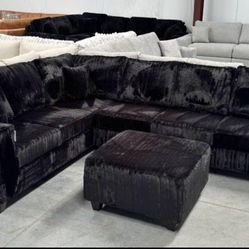 *Living Room Special!!!*---Modern Ibiza Black Leather Sectional Sofa W/Ottoman---Now $899!!!---Delivery And Financing👏$899Orlando, FL
