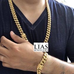 New 18k Yellow Gold Cuban Link Chain And Bracelet 18mm $200Oakland, FL