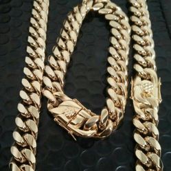 New 18k Yellow Gold Cuban Link Chain And Bracelet 18mm Thick $200Oakland, FL