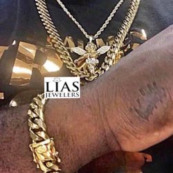 New 18k Yellow Gold Cuban Link Chain And Bracelet 18mm Thick $200Windermere, FL