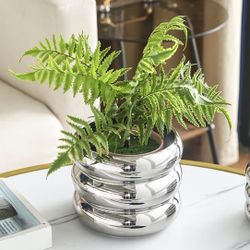 (9999-1) Silver Ceramic Planter with Drainage Holes, Unique Boho Small Flower Pots for Home Garden Office Desktop Decoration, Silver$15Davenport, FL