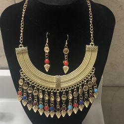 Colorful Stone Tassel Charm Gold Plated Set Necklace and Earrings$15Orlando, FL