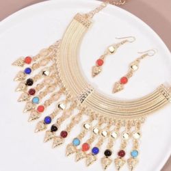 Colorful Stone Tassel Charm Gold Plated Set Necklace and Earrings$15Orlando, FL