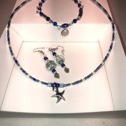 NEW Hand beaded 3 Piece set, Earrings, Neckland And bracelet in Blue And teal$10Orlando, FL