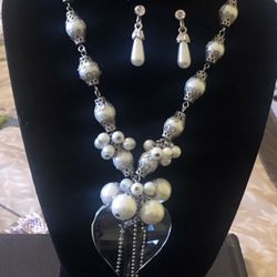 Natural Pearl Charm Heart Jewelry Set Necklace and Earrings$15Orlando, FL