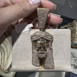 14k Solid Yellow Gold Diamond Jesus Pendant Charm 2.75”, Weights 30.8 Grams $1,750Belle Isle, FL