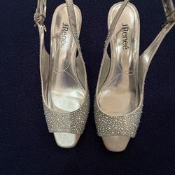 High heeled, crisscross, silver open toe sling backs$25The Villages, FL