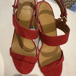 Used Tory Burch Mini Benton Wedged Sandal, Red Apple, US 8 1/2,$85Orlando, FL