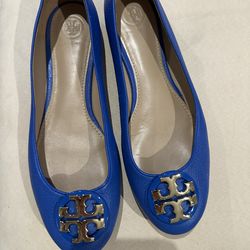 Tory Burch Reva Ballet Nellie Nappa Metal Logo Greek Blue/Silver- Size 8$80Orlando, FL