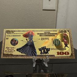 24k Gold Plated Merida Brave Disney Princess Banknote$10Orlando, FL