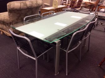 Modern silver retro dining table with glass extensions either end and six chairs$395Clermont, FL