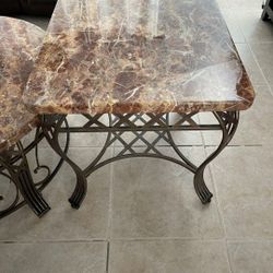 2 Marble Top Brown Beige End Tables Metal Frame$80Bvl, FL