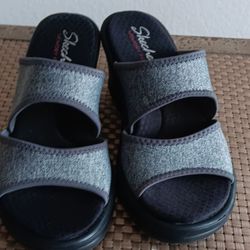 Skechers Sandals Women’s Size 7 Memory Foam Grey Wedge Slip On shoe$25Windermere, FL