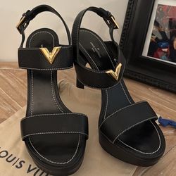 Louis Vuitton Black Leather Gold Buckle Open Toe Sandals $699Winter Park, FL