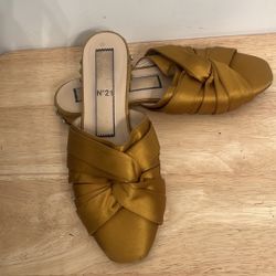 No21 satin knot Mustard yellow mule with rhinestones$95Heathrow, FL