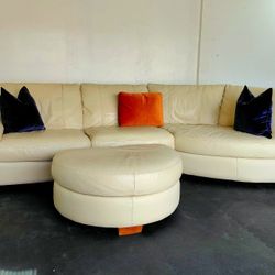 Thomasville Furniture: Gorgeous Creamy Leather Sectional W/ Ottoman!!!$375Orlando, FL