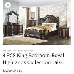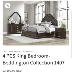 New King Bedroom Set 4 Pieces $1,999Orlando, FL