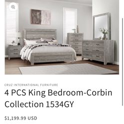 New King Bedroom Set 4 Pieces $1,199Orlando, FL