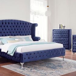 MODERN Queen Size Blue Four Piece Bedroom Set. Mattress sold separately $710Orlando, FL