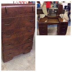 Antique waterfall vanity with mirror and matching 5 drawer chest$395Clermont, FL