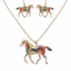 Women Gift Pendant Gold Plated Enamel Horse Running Set$15Orlando, FL
